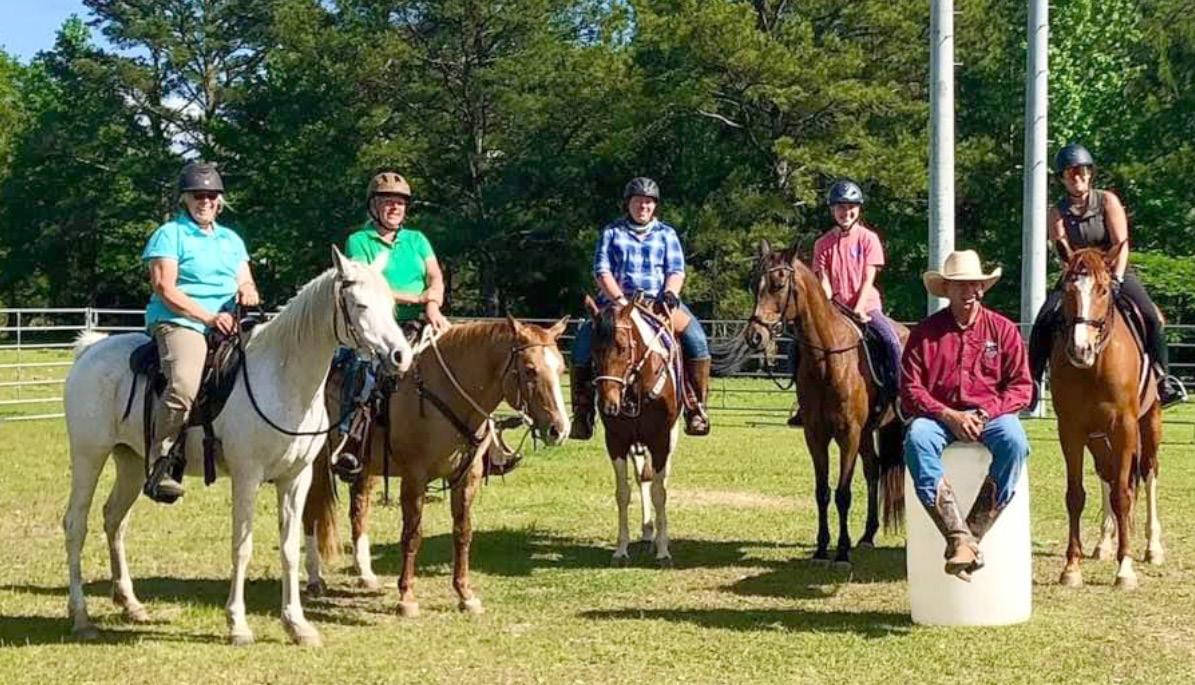 Lacey and her horse, Scarlett, pose alongside the other attendees of the Robbie Porter Horsemanship Clinic.