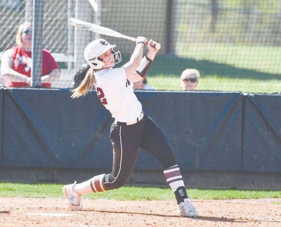 BELOW: Elmore County’s Ashtyn Pannell hits against Prattville on Saturday.