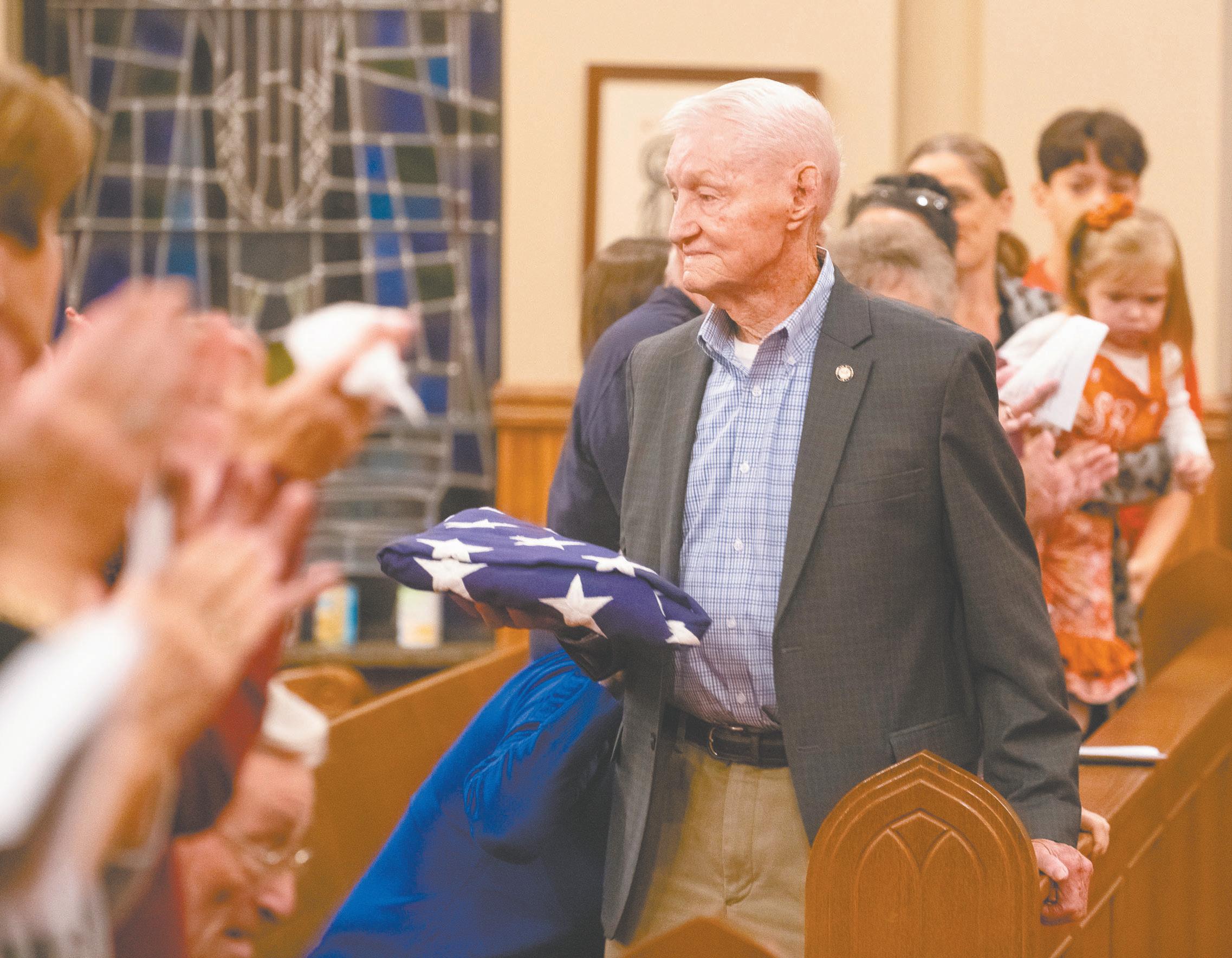 There was the usual patriotic music and honoring of all veterans present. But instead of highlighting one veteran for their service, two were honored. Carl Edwards, 99, and James Dozier, 98, were highlighted in the program and presented with U.S. Flags in a ceremony retired U.S. Army CW4 Gardner Perdue has only done once before.