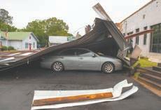 As the first round of rain and wind was coming through around 10 p.m. Thursday, it peeled back the roof of a building on Sistrunk Street in Tallassee. In the process three businesses were left exposed to the elements and left all three plus Grove Station without power.