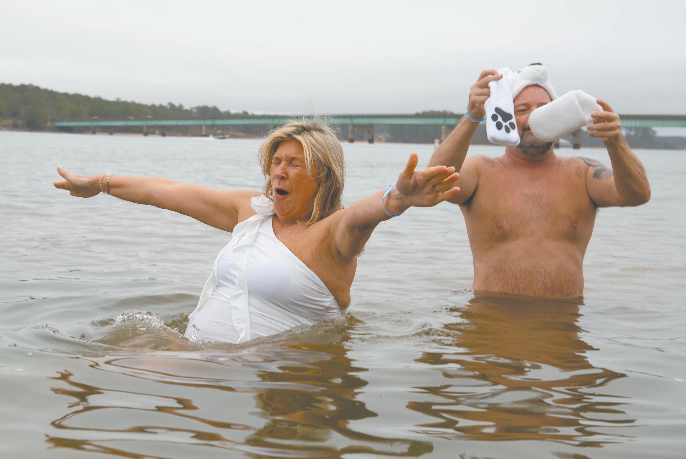The skies opened up Saturday and the only thing wetting plungers was the chilly waters of Lake Martin. Plungers went to the water’s edge dressed as polar bears, in togas and as queens.
