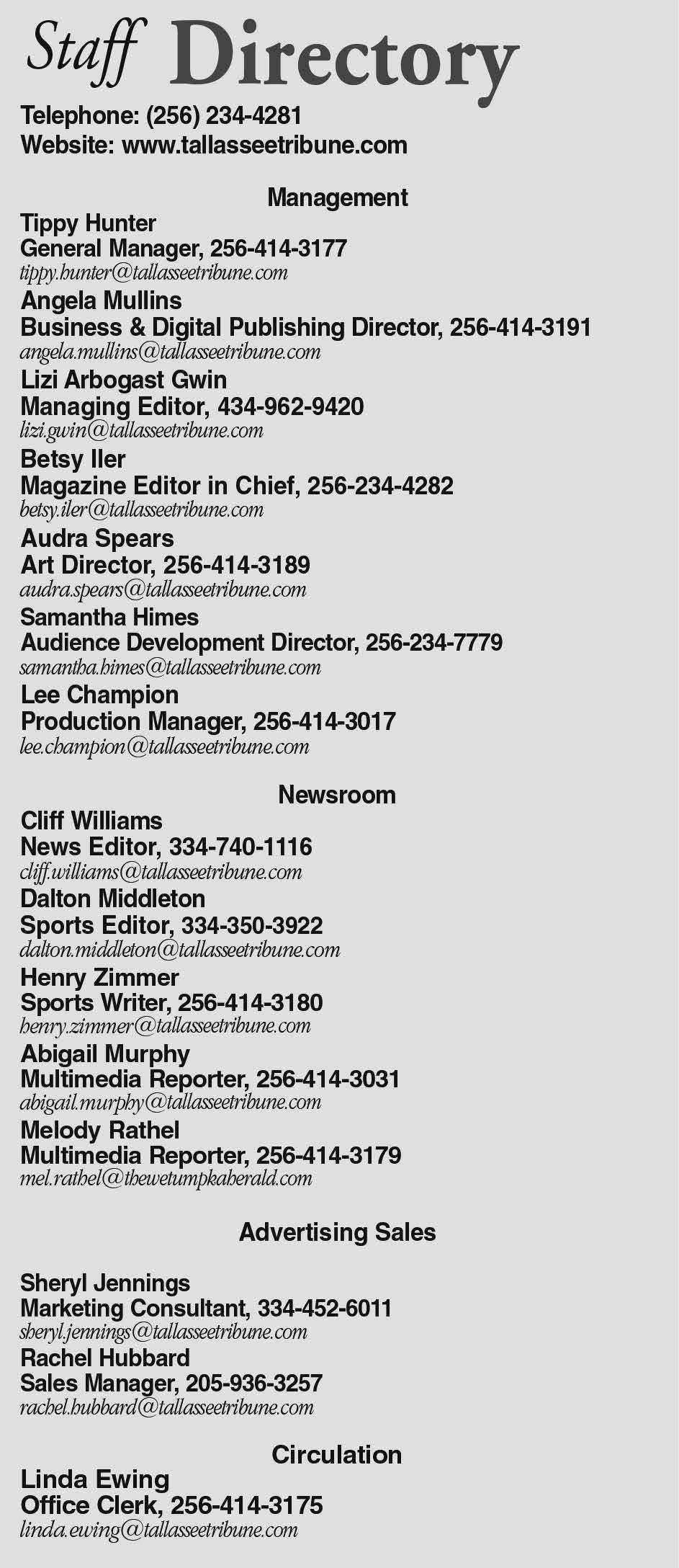 CELEBRATE RECOVERY GRACE POINT: Celebrate Recovery meets at Grace Point Community Church at 78223 Tallassee Highway in Wetumpka each Tuesday at 6:15 p.m. All are welcome to the meetings which provide a safe and loving environment for individuals seeking to conquer their hurts, habits and hangups. For more information, visit www. Gracepoint.info or contact Gwin Greathouse at gwingreathouse@gmail. com.