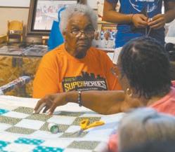 ABOVE: Jacqueline Lacey, 95, chats with Martha Piner as they quilt at the Elmore County Black History Museum. Lacey and Piner are founding members of the Thread My Needle Quilting group that started in 1997 in Lacey’s home.
