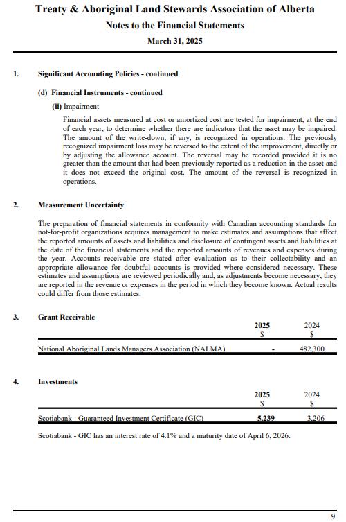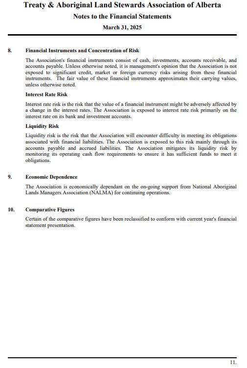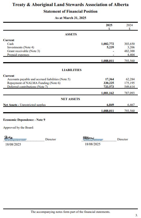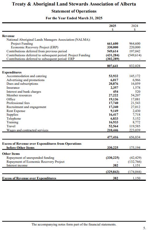 The financial report for the Treaty and Aboriginal Land Stewards Association of Alberta (TALSAA) for the fiscal year ending March 2025 reflects a path grounded in strength, sustainability, and responsibility to the land and our Nations.