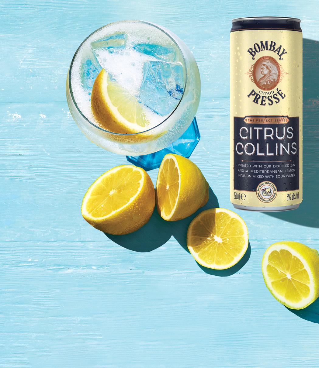 NEWCollins?What’saAfusionofgin,Mediterraneanlemons&soda WHY RANGE CITRUS COLLINS RTD Canned cocktails are set to be the next major growth platform in RTD • Citr us Collins is inspired by the Classic Tom Collins Cocktail. Lemon is a flavour consumers understand and enjoy achieving MASS Appeal. • Citr us Collins features a blend of 100% Natural Mediterranean lemons. TASTING NOTES • Citrus Collins is a refreshing, zesty, vibrant citrus flavour, featuring a blend of 100% natural Med iterranean Lemons with our signature London Dry Gin, mixed with premium soda water. It captures the zesty citrus notes of fresh lemon, perfectly balanced with the vibrant juniper notes of Bombay gin. This light, bright and uplifting drink is a nod to the classic Tom Collins Cocktail. KEY INSIGHTS Bombay is #1 premium gin RTD brand through Bombay Gin & Tonic & Bombay Double Serve.* Gin RTD is outgrowing the RTD category (+16%).* Light Spirit RTD’s are driving growth (+15% vs +10% total RTD) .* Cock tails have boomed globally through Covid, with convenient options growing in popularity. Canned cocktails are set to be next growth platform (after seltzer) as seen in US, where it is #2 RTD growth segment +115%.** CONSUMER TARGET 18-34 year-old adults looking for high-quality premix drinks on the go. PRODUCT DETAILS ABV: 5.0% 6 x 4pk | 250ml Can • Avai lable August 2022 RRP SHELF: $25* > 33% Margin.** RRP PROMO: $23* > 30% Margin.** • *Non CDS RRP’s -$1 **Marg ins are approximate based on regular pricing & will vary pending fees. Bombay Citrus Collins RTD Source *IRI Temple - RTD & Spirits Database to 19/06/22 ** Nielsen IQ US Scan Off Premise Channels; latest 52 weeks ending 1/8/2022 *** CGA - The Australian On Premise Consumer Pulse - March 2022. IBA LAUNCH DEAL* Order 2 x cases of BOMBAY CITRUS COLLINS and receive a BONUS CASE of BOMBAY CITRUS COLLINS Send your order to ausbmasales@bacardi.com including outlet name, state, wholesale number and contact details requesting ‘RTD NPD IBA Offer’ *MAXIMUM ONE DEAL PER OUTLET