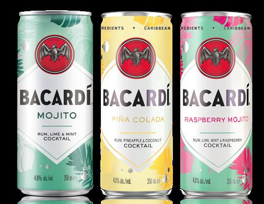 Light rum (glass) is 2nd fastest growing segment (+10%) as consumers seek light & versatile spirits. Í ’S first canned cocktail, Mojito, is #7 ranked RTD NPD Launch in Australia.****** The Mojito is the #1 most popular cocktail in Australian On-Premise.** Colada is #3 most popular cocktail in Australian On-Premise.** with natural ingredients. by the launch of Bacardí Coconut & Bacardí Raspberry 700ml flavour range. timings have ben aligned with Bacardí’s ‘Sounds Of Summer’ on pack consumer promotion to drive maximum sales and awareness from launch & new to category ’18-34 year old’s that love socialising the go consumers who are looking for convenient formats of their favourite drinks the cocktails in a can category easier to navigate will deliver shopper satisfaction**** A test case across a sample of independent stores delivered a 54% uplift in sales BacardÍ Carta