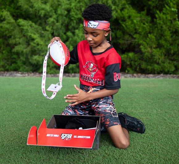 × Receive a FREE BACKPACK and other cool Bucs items in your Jr. Bucs Welcome Kit.