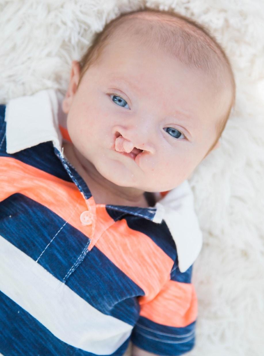 Logan was diagnosed with a complete bilateral cleft lip and palate – the result of a failure of the bones and tissues that form the nose, lips and roof of the mouth to fuse during development in the womb.