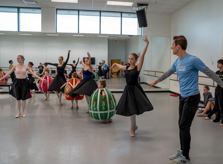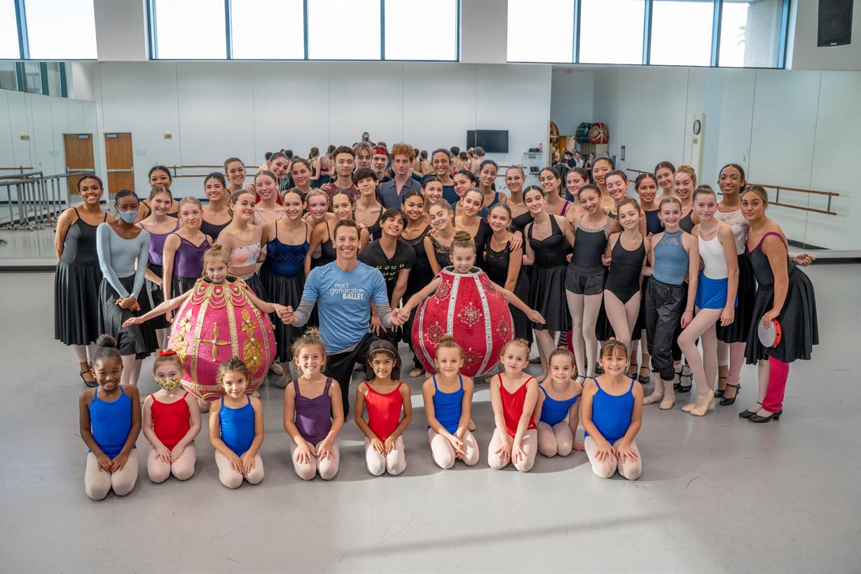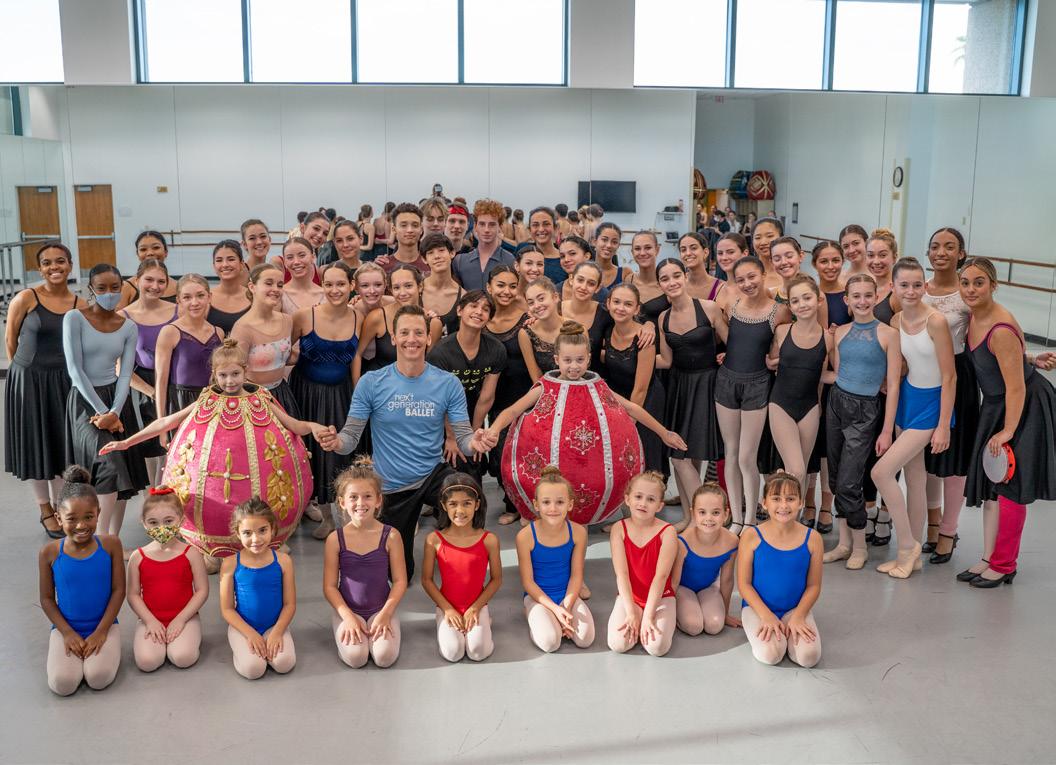 Philip Neal, artistic director of Next Generation Ballet and chair of Patel Conservatory Dance Department, with the dancers of Nutcracker at the Straz. Learn more about the production on page 10.