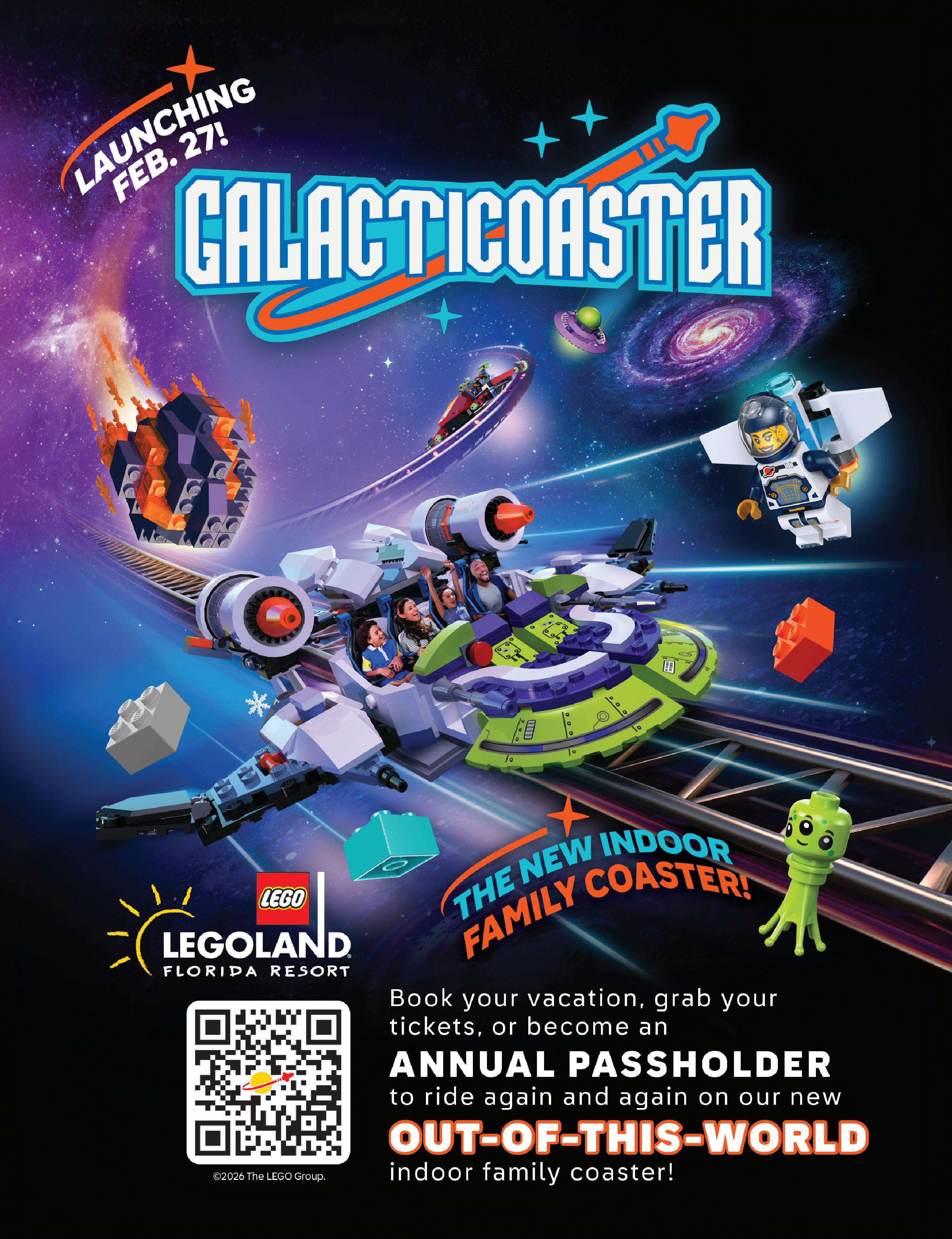 Get ready to blast off with LEGOLAND Florida Resort as they open a first-of-its-kind coaster experience designed by you! Not only will the Galacticoaster be indoors (yay!), but when it opens, you can expect to be immersed in a LEGO® galaxy in a way that’s never been done before. And here’s the coolest part … you’ll get to design your own space vehicle with more than 625 different options. Your digital creation will then be merged with the physical thrills of a ride, blasting you through an intergalactic LEGO solar system filled with special effects, synchronized lighting and surprise appearances from classic LEGO Space icons. Scan the QR code to learn more about the ride and what to expect! We’ll be there on opening day and share updates here too!