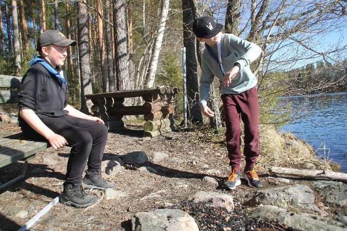 Lauantaiaamuna heräsimme ja menimme lipunnostoon.Sittenmenimmeaamupalalle jasenjälkeenteimmetöitälounaaseenasti. Lounaan jälkeen laitoimme saunan lämpiämään ja lähdimme kävelylle. Kun palasimme, söimme päivälliseksi pyttipannua, sitten menimme saunaan. Saunan jälkeen oli vapaa-aikaa, joten pidimmehauskaa.Lopuksisöimmeiltapalan ja pelasimme korttia samalla kun kuuntelimme Euroviisuja radiosta. Muut kävivätnukkumaan,muttaNoahjäivielä kuuntelemaanEuroviisujentulokset.