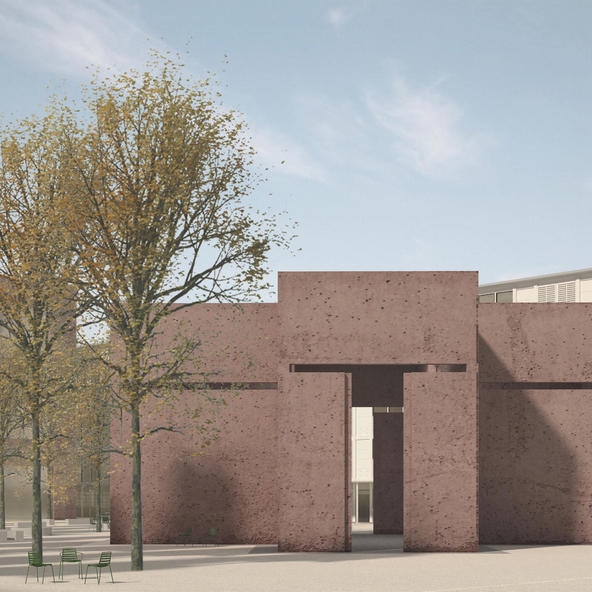 Memorial Ground Floor Plan Perspective view to the Memorial East Elevation -Memorial Façade
