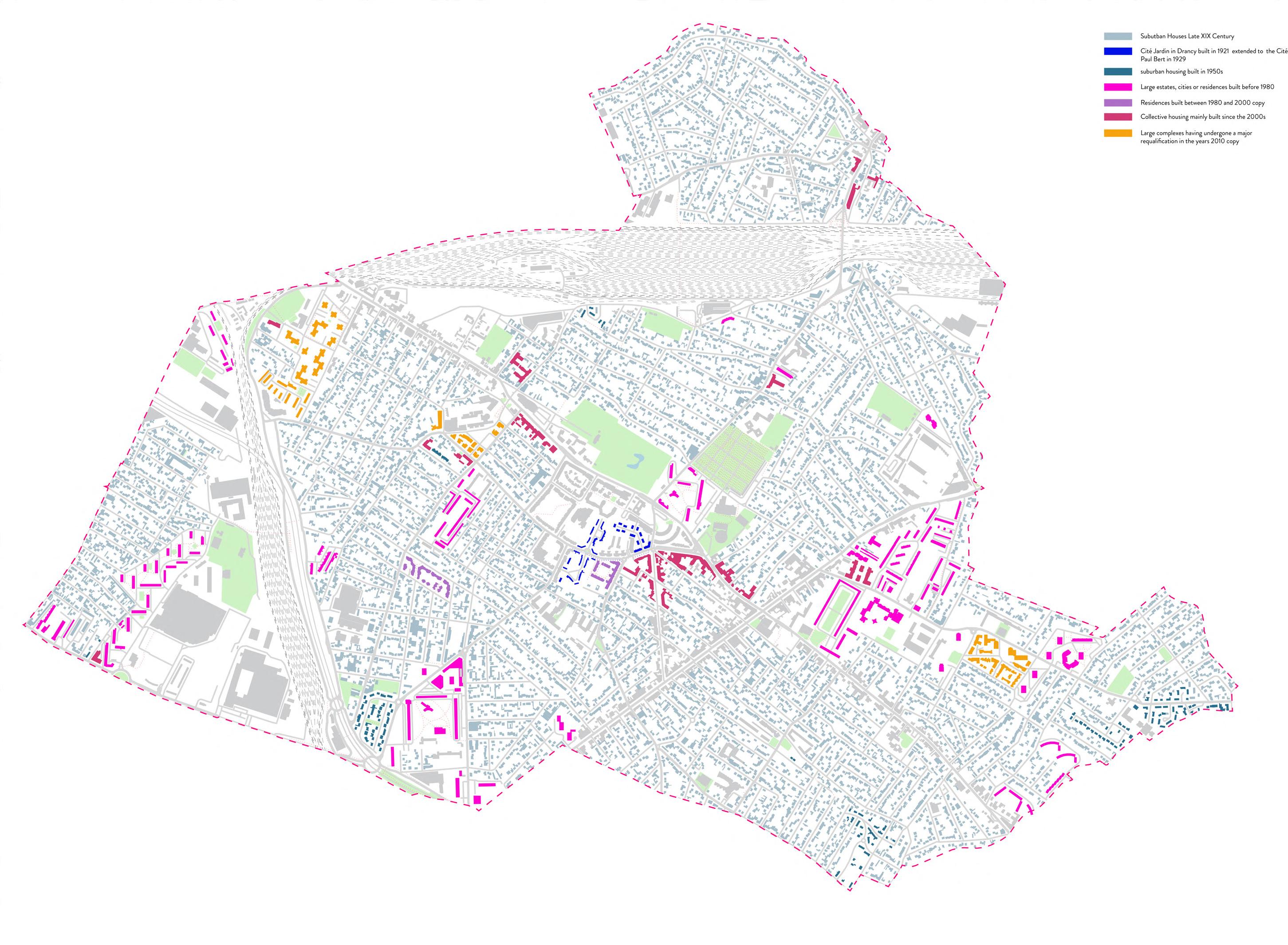 Map - Commune of Drancy Drancy maps with housing typologies Map of Grand Paris Express Drancy Synthetic map