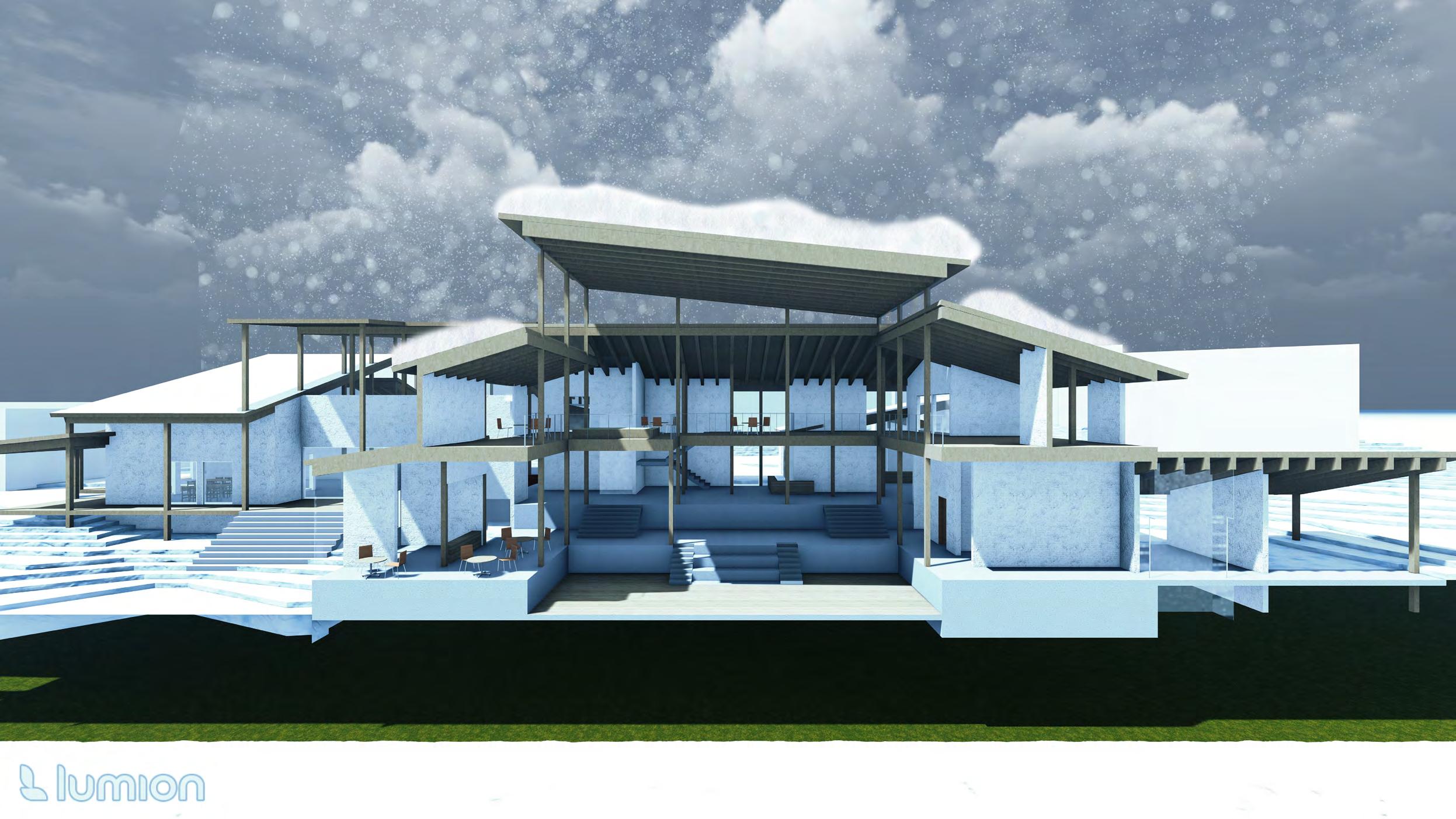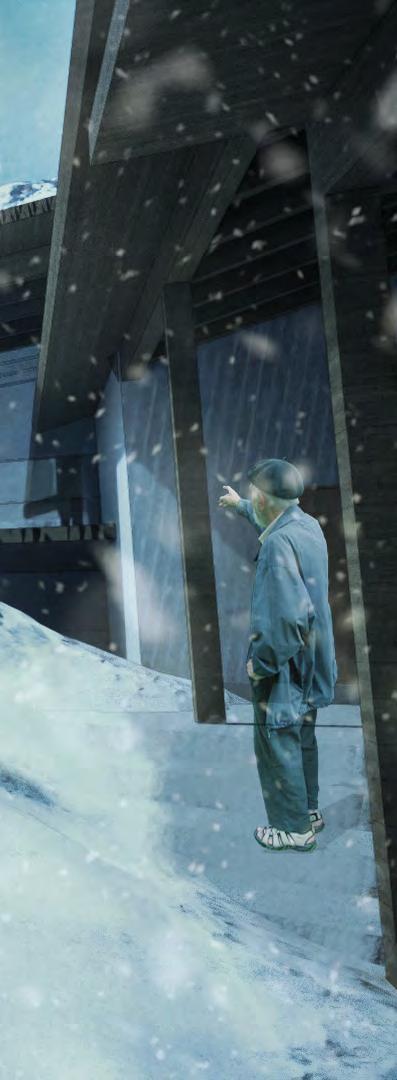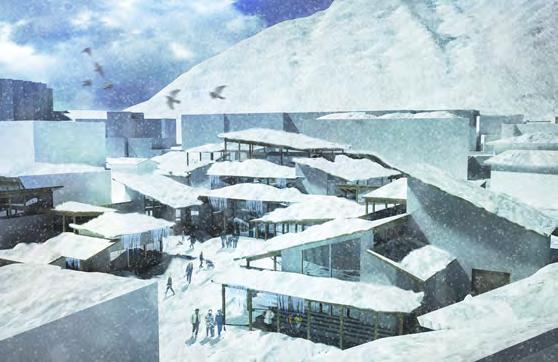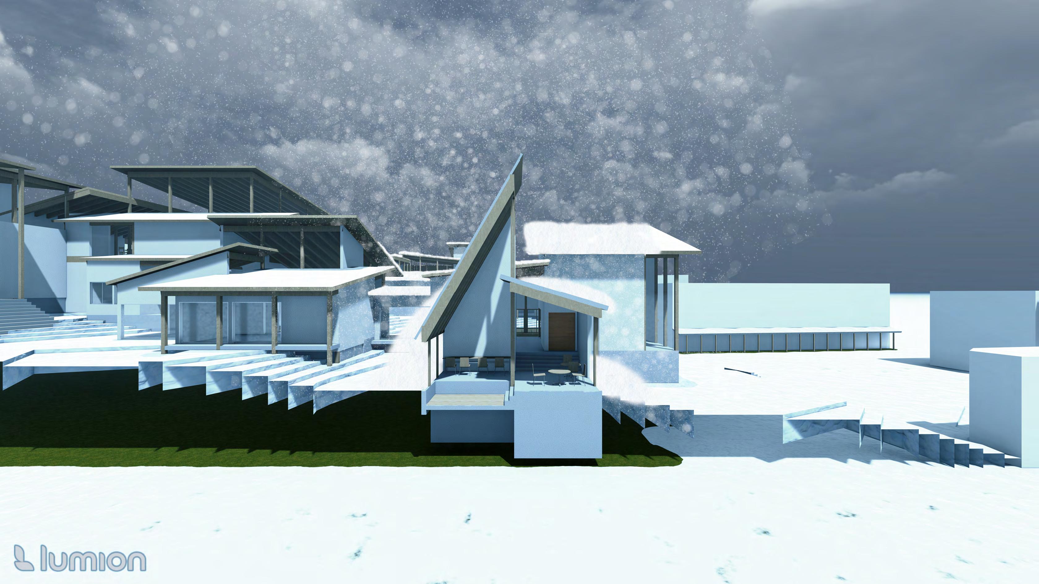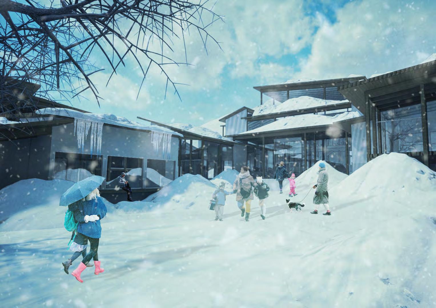 屋根によって雪を受け止め、雪の空間の集積で建築を構成する