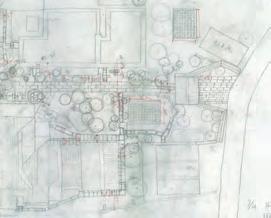 周囲から浮いている力強い箱型のボリューム ボリュームを周囲に合わせて減築する 南面の採光は保ちスラブを増築し、地面が彩られる 21