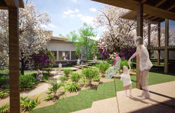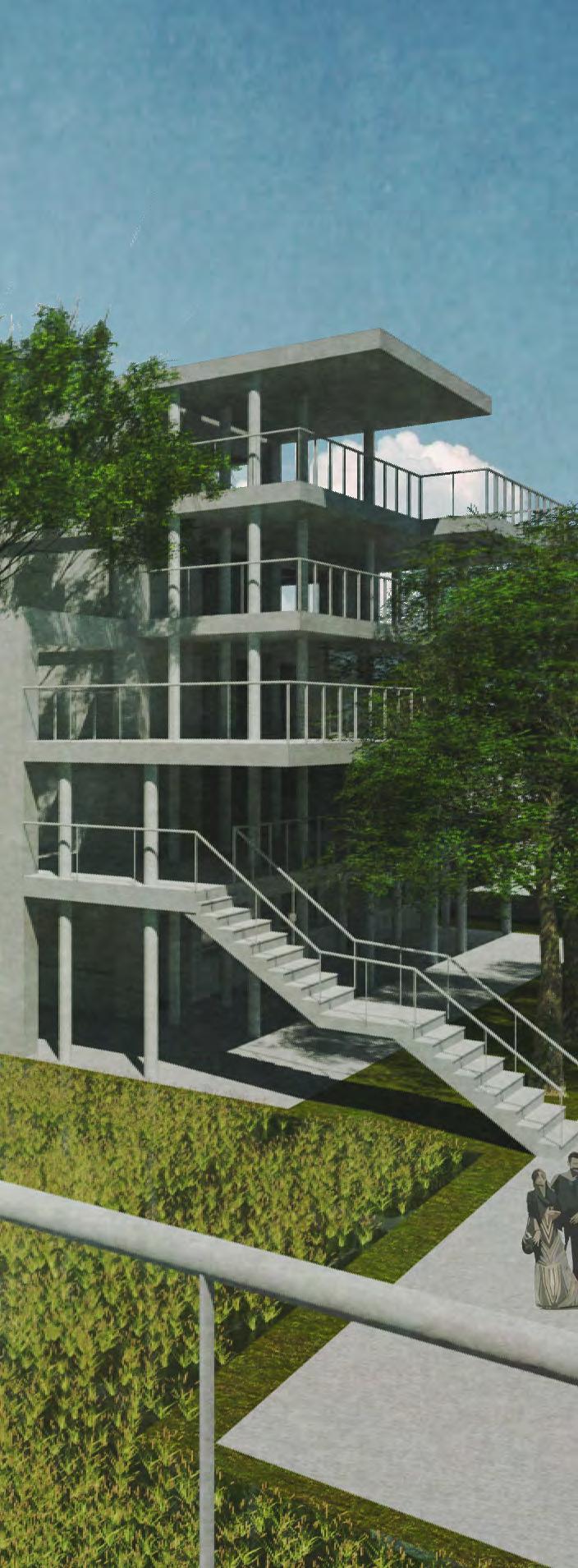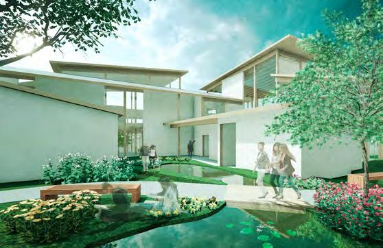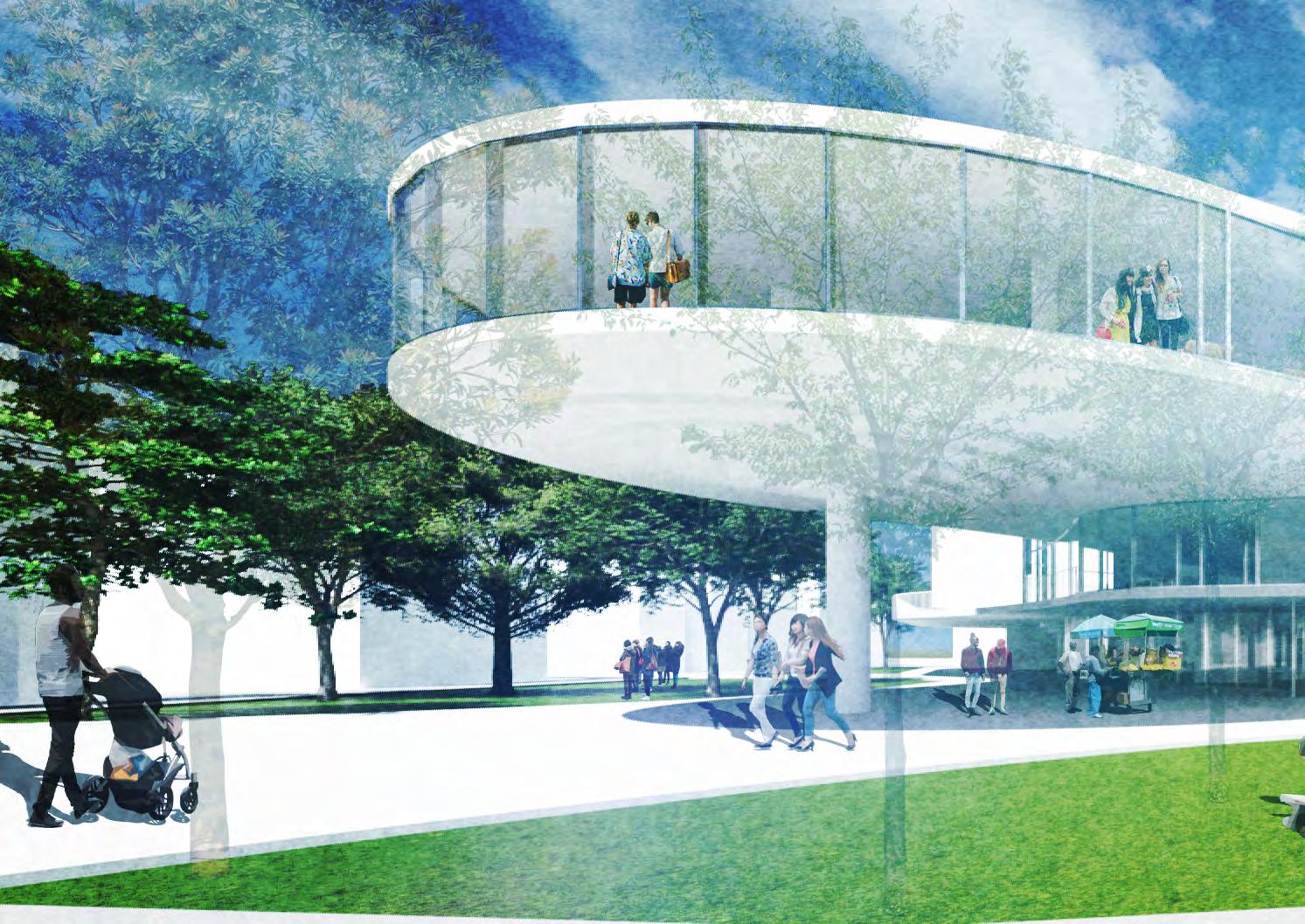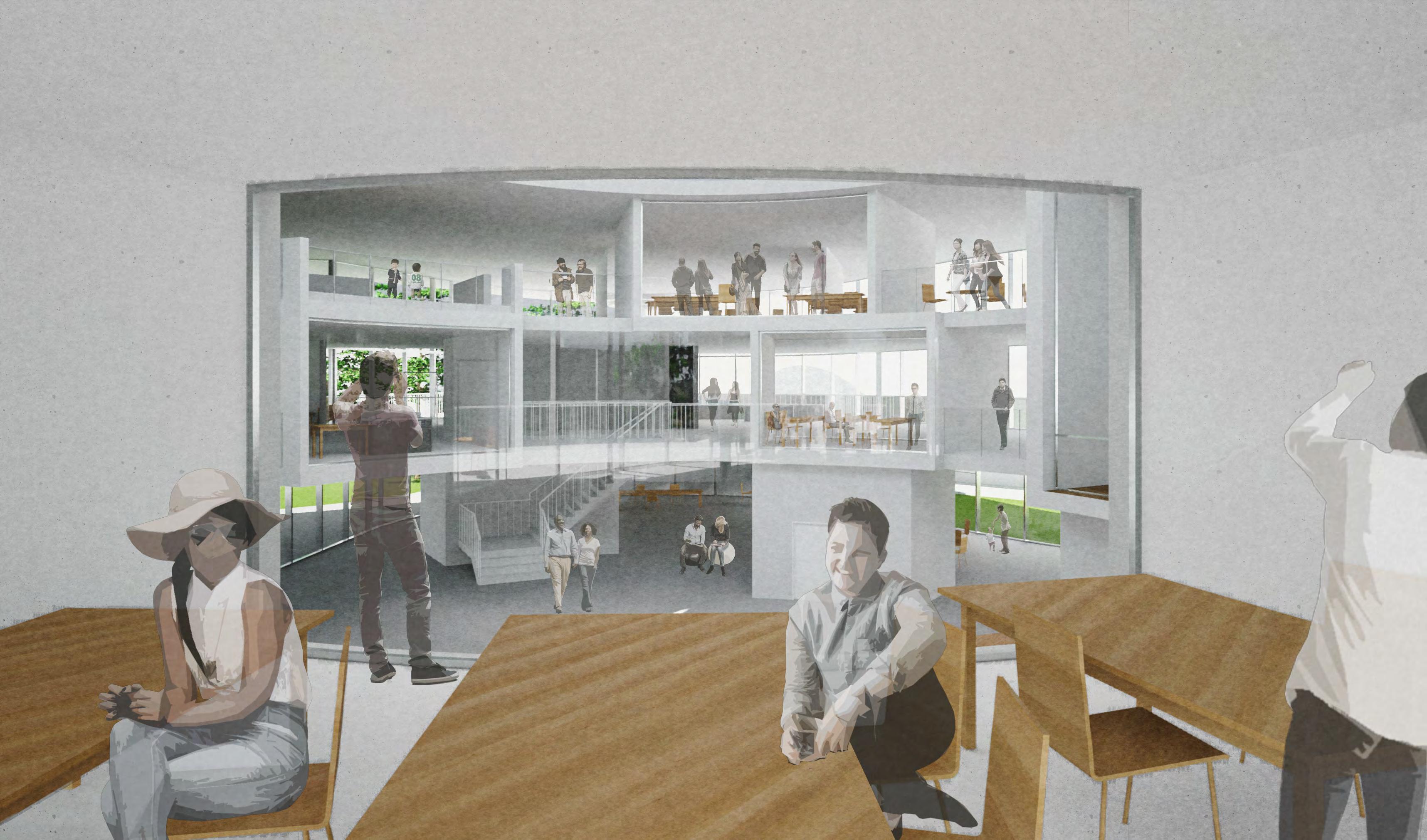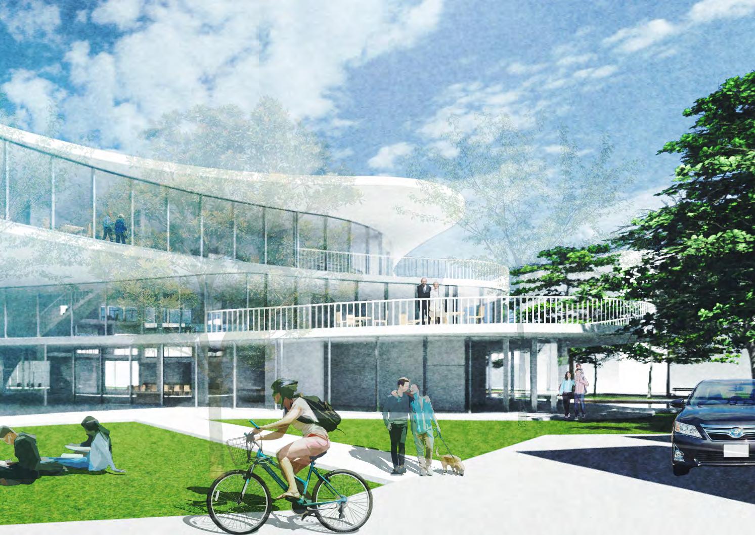 操作 -緑に囲まれた広場空間で、放射状に活動が可視化される建築-