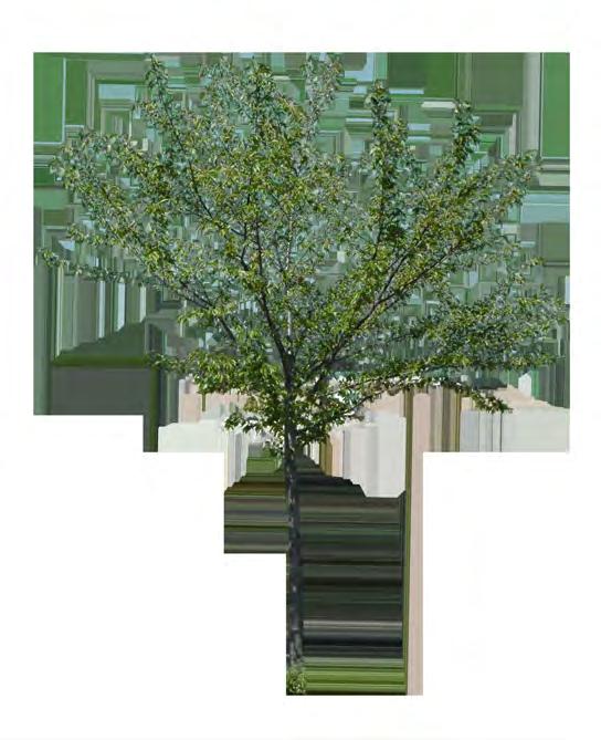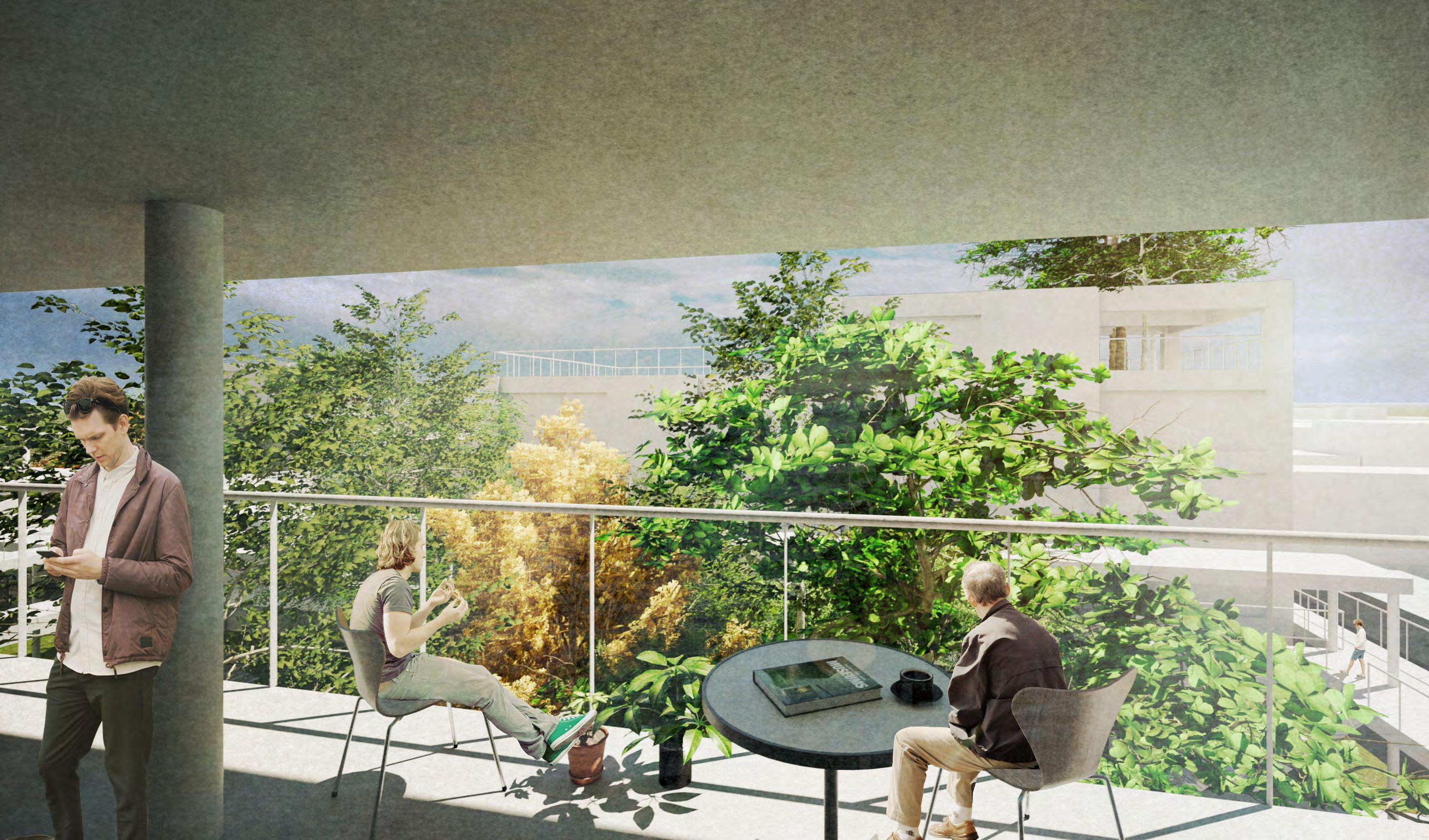 スラブ上に植えられた木々が、住棟間の住戸のプライバシーを守り木漏れ日を落とす