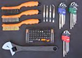 • Includes pick & finish hammer, bumping hammer, pein & finishing hammer, double end hand dolly, curved dolly, utility dolly & heel dolly 3PC WIRE BRUSH