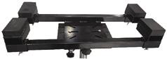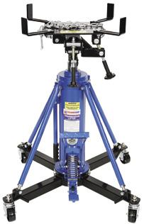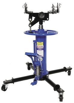 The adjustable cradle can be tilted forward or backward for optimum alignment of transmission bolt patterns and pins.