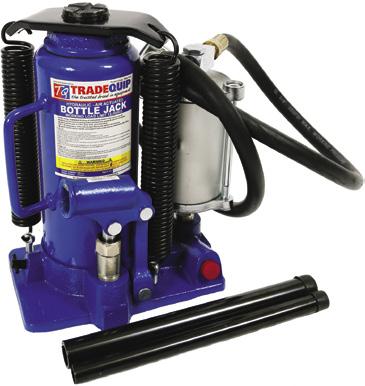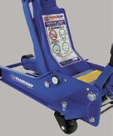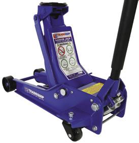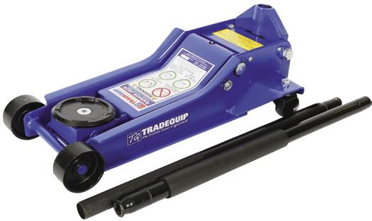 For full product specifications go to www.tqbbrands.com.au JACKS & STANDS 6 LATEST APPLIED TECHNOLOGIES CAR AND 4WD JACK STANDS MADE FOR THE TRADE Code Load limit Min. Height Base Area Excl. GST Incl. GST 1128T 1148T 1162T 2,000kg 4,000kg 8,000kg 285-428mm 395-605mm 468-715mm 206x186mm 287x252mm 324x294mm $99 $108.90 $174 $191.40 $295 $324.50 Quick Action Adjustable Height MECHANICS CREEPER 130KG 1023T Safe working capacity: 130kg Ergonomicshoulderrecesses Convenient tool trays on each side Safe working capacity: 25kg Tray depth: 43mm (inner) Swivel castors: 4x 50D x16Wmm 435L x 400W x 120Hmm (castor included) MECHANICS CREEPER CADDY TQTC1220 Safe working capacity: 680kg each Max. distance between rollers: 710mm Min. distance between rollers: 340mm Suits tyres up to: 280mm (W) Swivel castors: 100mm RATCHETING POSITIONING JACKS 1054T GARAGE JACK 3,000KG LOW PROFILE 2906T pair MADE FOR THE TRADE 118mm min. lift height HIGHLIFT-LOWPROFILE ANDDEEPREACH 488mm max. lift height Protective foam handle cover Dual pump lift technology Working load limit: 3,000kg Height: 118 - 488mm Handle length: 1400mm Front wheels: 90mm dia 40mm width Rear castors: 60mm dia 25mm width Saddle diameter: 115mm Dimensions: 670L x 380W x170Hmm Weight: 43kg TESTED IN AUSTRALIA MEETS MANDATORY AS2615:2016 the trusted brand in equipment the trusted brand in equipment the trusted brand in equipment the trusted brand in equipment the trusted brand in equipment FEATURES Constructed of high-grade steel & built to exacting standards for quality & durability. Lead-free paint finish is oil, grease and dirtresistant for easy cleanup. Quick action adjustable height mechanism. Double-lock safety pin design for extra safety and security. (1128T & 1148T) Welded steel frame & cast iron support. Adjustable height. Reinforced shaft for added strength stability. Sold in pairs and only recommended to be used in pairs. FEATURES Low profile and deep reach. Heavy gauge steel construction. 1400mm long handle for deeper reach. Quick Lift Dual Pump technology . Internal bypass valve overload protection. Lead-free paint finish to ensure a longlasting finish and prevent rust. Paint is oil, grease and dirt-resistant. Protective foam handle cover prevents vehicle damage. FEATURES Easy to clean finish that is oil and solvent resistant and won’t rust. 4 smooth-rolling swivel castors. Impact resistant polymer plastic. Built-in parts/tool storage compartments. FEATURES The creeper body is manufactured to “Made for the Trade” quality using a high-impact polymer material that resists impacts, won’t rust and is easy to clean. Comfortable padded headrest and load capacity of up to 130kg, this low-profile creeper is one of the lightest and most durable available. MADE FOR THE TRADE MADE FOR THE TRADE HEAVY GAUGE STEEL FEATURES Steel construction with metal rollers. Heavy duty nylon swivel castors. Easy foot-pedal lifting design. 2 jacks permit full 180° vehicle pivot. 4 jacks place vehicle on a 360° rolling platform. Lead-free paint finish helps prevent rust and is oil, grease and dirt-resistant for easy cleanup. Quick action adjustable height mechanism. Sold &recommended only to be used in pairs. Easy foot pedal lift Heavy duty nylon swivel castors MADE FOR THE TRADE from 3000kg Capacity 4000kg Capacity 8000kg Capacity 2000kg Capacity 25kg Capacity $499 Excludes GST Inc. GST $548.90 $45 Excludes GST Inc. GST $49.50 $469 Excludes GST Inc. GST $515.90 $88 Excludes GST Inc. GST $96.80 $99 Excludes GST Inc. GST $108.90