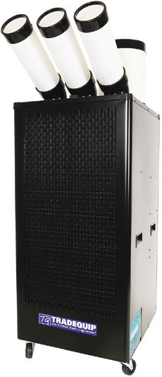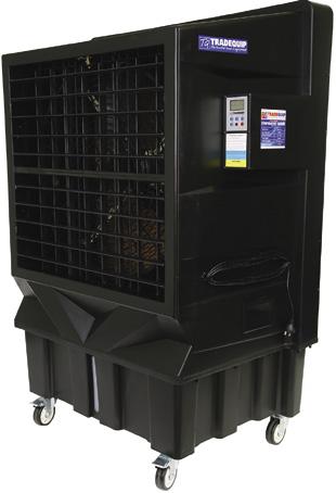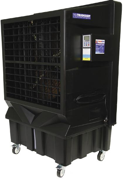 For full product specifications go to www.tqbbrands.com.au FANS & COOLING 32 LATEST APPLIED TECHNOLOGIES PORTABLE EVAPORATIVE COOLER 750W 1029T PORTABLE EVAPORATIVE COOLER 550W 1027T MADE FOR THE TRADE 240V/50Hz/750W 3 speed motor Max. air flow: 23,000 m3 per hour Water consumption: 20-35 litres per hour Effective cooling area: 200-260sqm Cooling area: 200-260m2 Water tank capacity: 200 Litres 1800H x 1600W x 780Dmm Weight: 128kg Remote Control Timer Panel Nylon Castors for easy portability 750 Watts the trusted brand in equipment *Freight Rates May Apply *Freight Rates May Apply MADE FOR THE TRADE 240V/50Hz/550W 3 speed motor Max. air flow: 18,000 m3 per hour Effective cooling area: 100-150sqm Water consumption: 12-18 litres per hour Water tank capacity: 100 Litres 1510H x 1120W x 680Dmm Weight: 58kg Remote Control Timer Panel Remote Control Timer Panel Cooler Maintenance Cooler Maintenance 550 Watts the trusted brand in equipment EUROPEANSWINGSYNCHRONOUSDESIGN FUNCTION MADE FOR THE TRADE PORTABLE EVAPORATIVE COOLER 750W 1035T 240V/50Hz/750W 3 speed motor Max. air flow: 23,000 m3 per hour Effective cooling area: 150-200sqm Water consumption: 12-18 litres per hour Water tank capacity: 130 Litres 1730H x 1120W x 680Dmm Weight: 63kg 750 Watts the trusted brand in equipment EUROPEANSWINGSYNCHRONOUSDESIGN FUNCTION *Freight Rates May Apply COOLER COVER 1035T-CO the trusted brand in equipment Water-resistant fabric Lightweight and breathable UV treated and Easy to use To protect 1027T, 1028T and 1035T TradeQuip Portable Evaporative Coolers when not in use. MADE FOR THE TRADE VIEW RANGE HERE TRADEQUIP EVAPORATIVE COOLERS FEATURES & BENEFITS Moulded polyethylene housing will not crack and is rust & leak proof. Environmentally-friendly alternative to traditional reverse cycle A/C. Cools without chemicals or refrigerants. Long-term dependability. Near maintenance free operation. Cools where traditional cooling methods are impractical or cost-prohibitive. Remote control speed adjustment. Direct drive. LCD 24 hour timer panel. Easy to read water level sight tube gauge. Dual pour in refill water inlet and/or 3/4” hose fitting for automatic tap refill. Adjustable water flow & drain valve. Nylon castors for easy portability. $99 Excludes GST Inc. GST $108.90 Limited Stock $4899 Excludes GST Inc. GST $5388.90 $1399 Excludes GST Inc. GST $1538.90 $1699 Excludes GST Inc. GST $1868.90