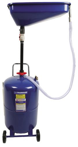 For full product specifications go to www.tqbbrands.com.au FLUID HANDLING 30 LATEST APPLIED TECHNOLOGIES OIL DRAIN PLUG KEY SET 9027T SELF-EVACUATING OIL DRAINER 65 LITRE 1046T Capacity: 65 Litres Working height: 1080-1600mm Discharge pressure: 12psi Telescopic adjustment Air inlet: 1/4” BSP Hex Key socket bits: 8mm, 9mm, 10mm, 12mm, 13mm, 14mm and 17mm Square socket bits: 5/16”, 3/8”, 7mm, 8mm, 10mm, 11mm, 12mm, 13mm & 14mm Torx socket bits: T45 Spline (tamper) socket bits: M16 Triangular socket bits: 10mm Square Drive socket: 10mm 1 x 3/8”Drive Sliding T-Handle Telescopic height adjustment Air pressure relief valve Fluid sight tube TRUCK FLUID DRAIN PAN WITH HAND PUMP 65 LITRE 1147T Lightweight high-impact polypropylene. Oil and coolant resistant Manoeuvrable 4” castors Tank size: 1300x730x200mm Built-in rotary hand discharge pump Removable metal filter screen MADE FOR THE TRADE MADE FOR THE TRADE TRUCK FLUID DRAIN PAN 60 LITRE 1146T Capacity: 60 Litres Enamel steel construction Oil and coolant resistant Size: 1174 x 641 x 673mm Front swivel castors MADE FOR THE TRADE FEATURES Enamelled steel construction. Oil and coolant resistant. Removable metal screen. Two front swivel castors. Two rear fixed wheels. Brass drain valve. Transfer pump coupling. Grab handle. FEATURES Enamelled steel construction. Oil and coolant resistant. Removable metal screen. Four swivel wheels, two which are braked. Handle can be mounted to front or side. Drain valve & Grab handle. FEATURES Lightweight high-impact polypropylene. Suitable for engine oil, coolant and transmission fluid. Built-in rotary hand discharge pump. Removable metal filter screen. Smooth rolling rubber castor wheels. Removable metal filter screen MADE FOR THE TRADE FEATURES Collect, transfer, evacuate used engine oils, transmission fluids, power steering fluids etc. Top quality heavy-gauge steel collection tank with adjustable telescopic drain pan. Offset drain bowl and Tank oil level indicator. Air pressure relief valve prevents. Sturdy rubber front wheels and ball bearingmounted rear castors provide stability and easy maneuverability. Lead-free paint is oil, grease and dirt-resistant. Oil, heat, ozone and abrasion resistant hose. CHROME VANADIUM STEEL the trusted brand in equipment the trusted brand in equipment the trusted brand in equipment the trusted brand in equipment 65 LITRE Capacity TELESCOPIC COLLECT STORE/CARRY DISCHARGE AIR OPERATED LIGHT WEIGHT POLYMER 60 LITRE Capacity MADE FOR THE TRADE Removable metal filter screen 95 LITRE Capacity TRUCK FLUID DRAIN PAN 95 LITRE 1145T Capacity: 95 Litres Minimum tray clearance: 196mm Reservoir dimensions: 910L x 725W x 165Hmm Size: 1120L x 780W x 195Hmm the trusted brand in equipment Handle can also be mounted here $88 Excludes GST Inc. GST $96.80 $413 Excludes GST Inc. GST $454.30 $579 Excludes GST Inc. GST $636.90 $285 Excludes GST Inc. GST $313.50 $389 Excludes GST Inc. GST $427.90