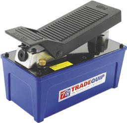 INDUSTRIAL QUALITY INDUSTRIAL QUALITY Suits TradeQuip 2054T 2054-H& FEATURES Constructed of high-grade steel and built to exacting standards for quality and durability. Lead-free paint finish is zoil, grease and dirtresistant for easy cleanup. High quality hydraulic steel cylinder unit helps to reduce wear and extend service life. Piston-ram is treated and polished. Hydraulics are powered with a high quality oil, which offers better corrosion resistance and high/low temperature flexibility. Heavy walled extension tubes stand up in tough applications. FEATURES Durable steel construction. Clamps to wheel rim & breaks bead simply with up to 5,000kg of force. Requires 10,000psi air/hydraulic pump (sold seperately). FEATURES Economical solution for earthmover wheels 25” – 51” multi-piece rims with pry bar pockets. Hydraulically clamps on wheel. Durable steel construction. Hydraulic power breaks beads in seconds. Requires 10,000psi air/hydraulic pump (sold seperately). MADE FOR THE TRADE AIR/HYDRAULIC PUMP 2054T Maximum output pressure: 10,000psi Usable hydraulic fluid capacity: 2.25 Litres Operating air pressure: 90-145 psi Air consumption: 7.5CFM @ 100 psi Oil delivery with No Load: 49.5 cu.in/min Oil delivery with Load: 7.6 cu.in/min Input (Air) port thread: 1/4” -18 NPT Output (Oil) port thread: 3/8” -18 NPT HANDS FREE POWER