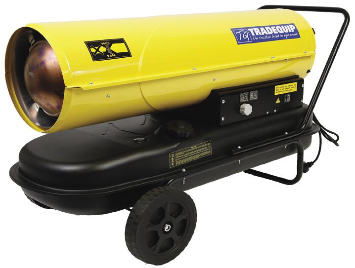 STOCK IN PRODUCTION AND SHIPPING. AT THE TIME THAT YOU PLACE YOUR ORDER, YOUR PRODUCT MAY NOT BE IN STOCK BUT AN ETA WILL BE PROVIDED. OUR BEST EFFORTS ARE BEING MADE TO MAINTAIN STOCK LEVELS OF PRODUCTS FEATURED IN THIS CATALOGUE, BUT THE SITUATION REMAINS FLUID DUE TO BOTTLENECKS IN GLOBAL SUPPLY CHAINS. YOUR PREFERRED DISTRIBUTOR WILL BE UPDATED AS SOON AS PRACTICAL WITH ANY INFORMATION AFFECTING THIS PUBLICATION. PRODUCTS DISTRIBUTED BY TQB BRANDS PTY LTD ARE DESIGNED, INTENDED & MARKETED FOR TRADE AND COMMERCIAL USE ONLY. ERRORS AND OMISSION EXCEPTED. *FREIGHT COST MAY APPLY ON BUY-IN LINES, SPECIAL ORDER PRODUCTS, NONE STOCK LINES, LARGE OVERSIZE ITEMS & IN REGIONAL AREAS. WORKSHOP HEATING FEATURES Burns diesel or kerosene. Built in oil burner. Electronic flame control system. Safety overheat thermostat and pressure switch. Stainless steel heat exchanger. Double skinned combustion chamber for thermoacoustic insulation and safe low surface temperature. Preheated oil filter. Twist lock fuel cap with cable. Pre-purge and post-ventilation cycles. FEATURES Burns diesel or kerosene. Built in oil burner. Electronic flame control system. Safety overheat thermostat and pressure switch. Stainless steel heat exchanger. Double skinned combustion chamber for thermoacoustic insulation and safe low surface temperature. Preheated oil filter. Twist lock fuel cap with cable. Pre-purge and post-ventilation cycles. MADE FOR THE TRADE Power output: 30kW - 102,360 Btu/h Motor: 240V/50Hz 10A 230W Air delivery: 720cubic metres per hour Noise level: 76dB(A) Fuel consumption: 2.4kg/hr Tank capacity: 38 Litres Dimensions: 880 x 456 x 590mm Weight: 21kg Power output: 50kW - 170,600 Btu/h Motor: 240V/50Hz 10A 340W Air delivery: 1100 cubic metres per hour Noise level: 77dB(A) Fuel consumption: 4kg per hour Tank capacity: 56 Litres Dimensions: 1090 x 490 x 585mm Weight: 27kg SEASONAL LINE RUNS UP TO 9 HOURS ON A SINGLE FILL RUNS UP TO 9 HOURS ON A SINGLE FILL WORKSHOP HEATER 30kW 1096T the trusted brand in equipment WORKSHOP HEATER 50kW 1097T the trusted brand in equipment SEASONAL LINE Scan code for online product demonstration MADE FOR THE TRADE VERY Limited Stock VERY Limited Stock $719 Excludes GST Inc. GST $790.90 $819 Excludes GST Inc. GST $900.90