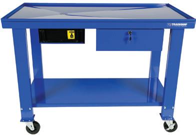 Bed winch for easy raise and lower adjustment. Paint is oil, grease and dirt-resistant for easy cleanup.