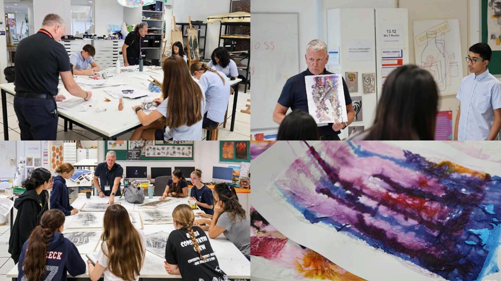 Across the school, students also benefited from a series of dynamic workshops led by visiting artist Ian Murphy. Known for his expressive drawing and painting techniques, his sessions emphasised mark-making, layering, and working with texture, leaving students energised and eager to experiment further in their own practice.