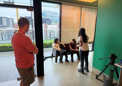 Both our IB and A Level students were able to work with Ian and experiment with production techniques, work on technical skills, and shoot valuable footage for their portfolios and music video projects. The Year 12 IB students spend time unpacking the role of the Director and practising hands-on directing skills, such as coaching performance, choreographing camera movements, and developing blocking plans. The Year 12 A Level students had a deep dive into music video production, looking at the conventions of the genre and analysing the elements that make successful music videos. In the afternoon, this led to the creation of a music video utilising elements from the morning session.