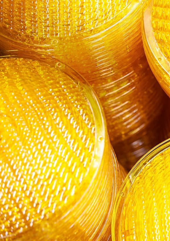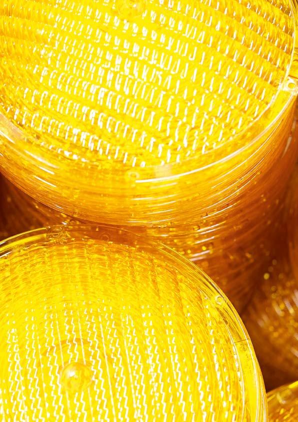 In das Trägermaterial eingebundene Mikroglasperlen ergeben eine ächige Re ektorfolie ohne Wabenstruktur.