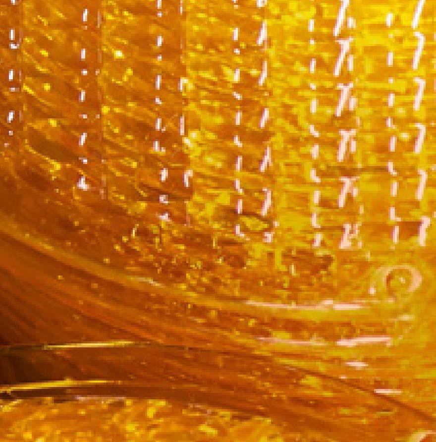 Zwischen Trägermaterial und transparentem Deckmaterial eingekapselte Mikroglasperlen sorgen für eine optisch erkennbare Wabenstruktur.