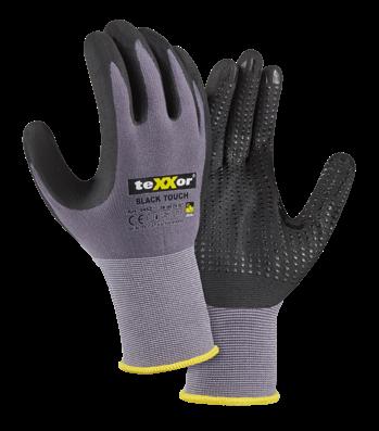 Die atmungsaktiven und touchscreenfähigen teXXor® Nylon-Strickhandschuhe BLACK TOUCH® bieten ein angenehmes Tragegefühl und eine hohe Griffsicherheit, auch bei Nässe.