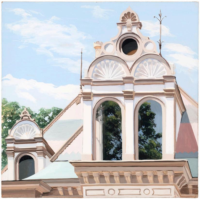 Altoon Sultan is known for her landscapes and architectural paintings that reveal her attention to light, spatial relationships, and color. At first glance, this small painting could be mistaken for a photograph, as it realistically highlights the intricate architecture of a Saratoga Springs Victorian home and the reflection of a tree in the windows.