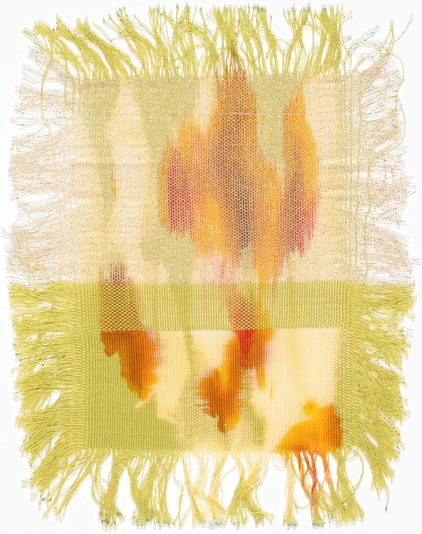 I chose Untitled #82 by Victoria Manganiello to hang above my bed. I had started weaving a few months before and fell in love with her work; I was so excited to have the opportunity to see it in my room every day. The metallic thread woven into it shines beautifully in the light.