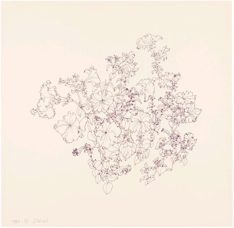 Ruth Asawa was inspired by organic and biomorphic forms, creating an extensive body of looped-wire sculptures and works on paper. She experimented with a range of mediums throughout her career including drawing, sculpture, and prints, and spent two months in 1965 at the Tamarind Lithography Workshop in Los Angeles learning printmaking. While she largely focused on sculpture and public commissions, lithography was a part of her art practice throughout her career.