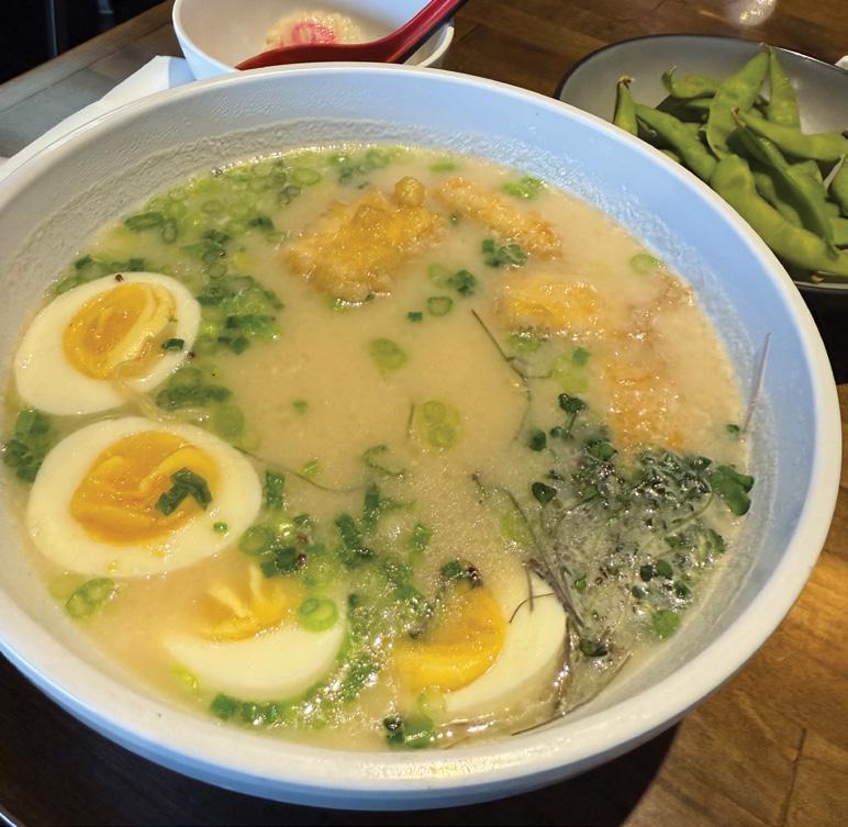 The Tonkatsu Ramen with tofu is our favorite, though pork belly, seafood, steak, chicken katsu, and dumplings are all in play. A rich, pork-forward broth becomes the perfect swimming pool for noodles, edamame, microgreens, and a jammy egg. Add those little pillows of fried tofu and you could almost call it health, but delicious is the only label that really matters.