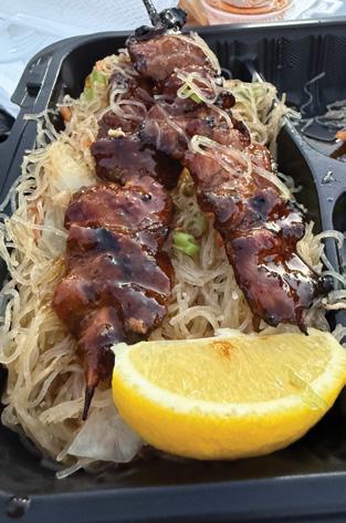 Before you even get to the food, the smile in the service window is worth the drive. Order the No. 2 with pork and you’ll get pancit, a traditional Filipino noodle dish tossed with fresh vegetables in a savory sauce. Squeeze the lemon over everything. The noodles are topped with pork on a stick, glazed in a sticky-sweet sauce, and honestly, nothing ever goes wrong when meat is served on a stick.