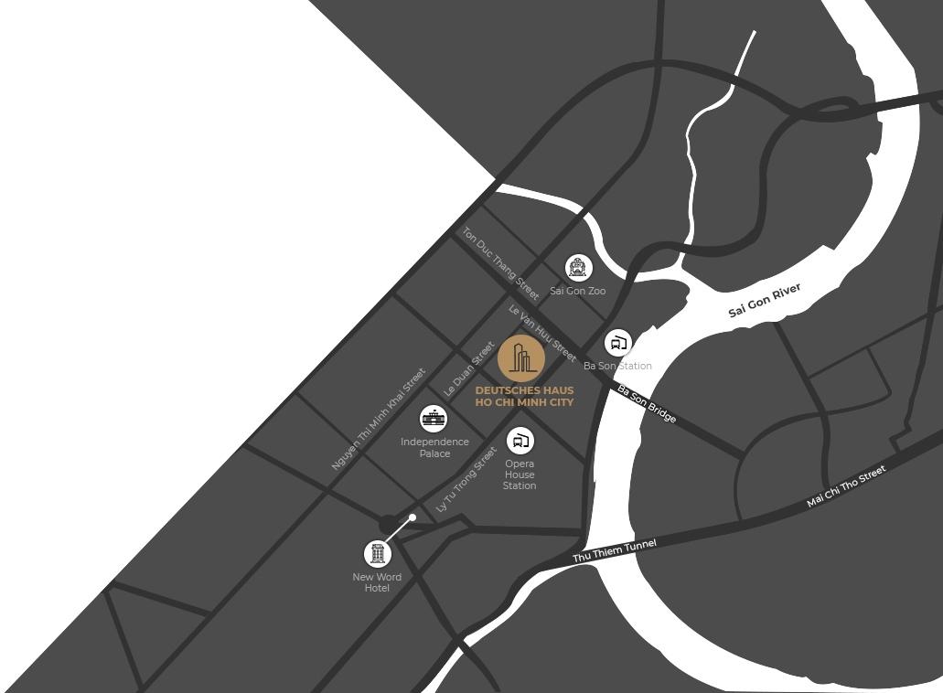 The altitude of Deutsches Haus Ho Chi Minh City is 9m a.s.l and the highest point of the city. The strategic location of Deutsches Haus Ho Chi Minh City simultaneously allows its tenants to attract and retain top talents for their business and take full advantage of future infrastructural developments like the metro line.