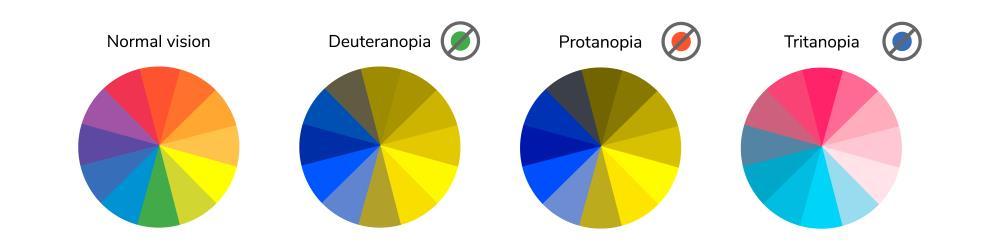 • Tritanomalyisalsoknownas"blueweakness."Itischallengingtodistinguishbetweenblueandgreenas wellasbetweenyellowandredwhenonehasthislessprevalenttypeofcolorblindness.Peopletypicallysee someshadesofbluebecausetheyhaveblueconesintheireyes.