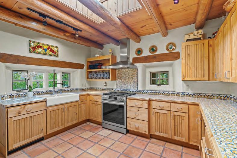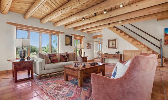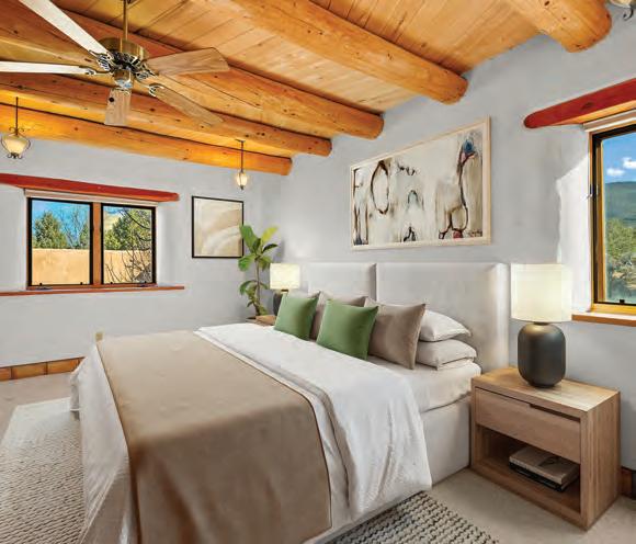 4,950 SQ FT | 5 BEDS | 4 BATHS | GUEST CASITA The Pinnacle of Luxury. This architectural masterpiece blends a three-bedroom main house with a private twobedroom casita. Every detail reflects a commitment to quality, from hand-plastered walls and viga ceilings to a private elevator and a 1,350-bottle wine cellar. The upper-level great room, featuring a dedicated kitchenette and raised fireplace, offers the most iconic views of Taos Mountain. Complete with a 475 sq. ft. artist’s studio, hot tub, and lush gardens, this is the ultimate village estate.