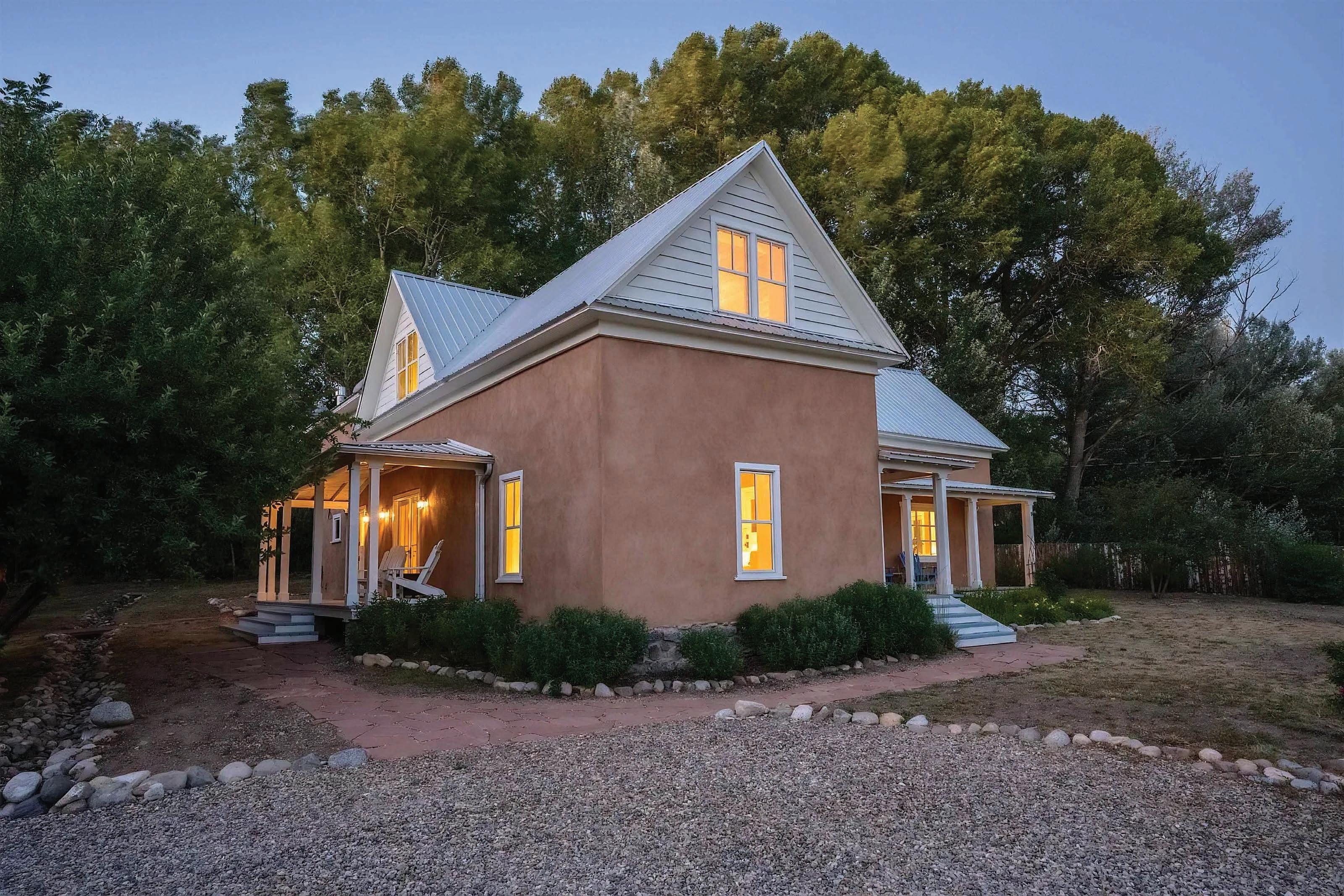 Arriving at this historic farmhouse in Arroyo Hondo feels like coming home. The expertly renovated house was built in Territorial style in the early 1900s. Tucked into the valley on two acres, the property previously grew alfalfa and has a thriving apple orchard.