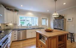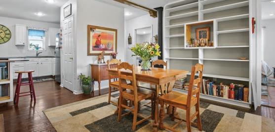 e dining area ows into the expansive and bright kitchen addition with the pantry and mudroom near the back entry. ere is a Dutch door leading outside — one of the many handcra ed doors in the home.