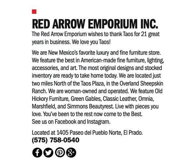 TheRedArrowEmporiumwishestothankTaosfor 23 great yearsinbusiness.We love youTaos!