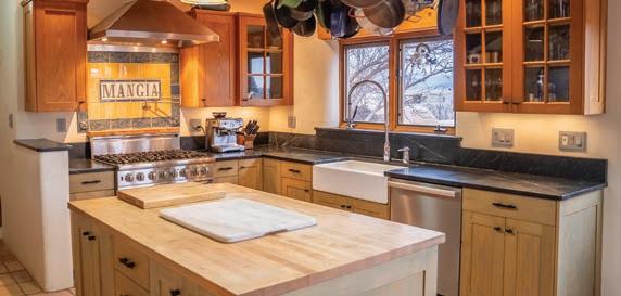 e owners credit Steven Ninneman, founder of Taos Red Cabinet and Construction, with the custom woodworking like the staircase railing. e general contractor was Cadillac Builders, and Lafe Harrower was brought in to do the majority of the renovation work.