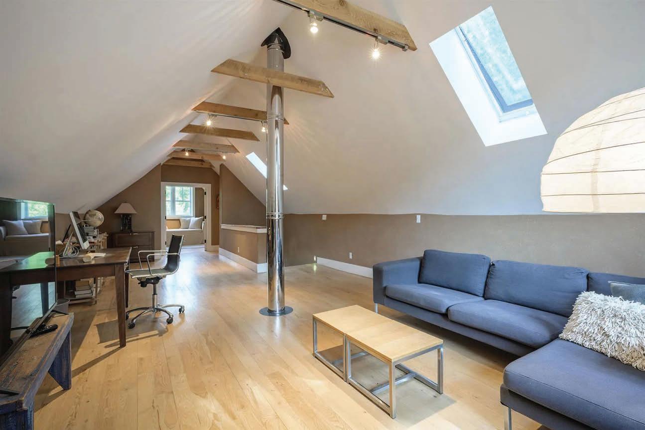 ere is a large open space that is currently a media room but could be an o ce or artist studio due to its north facing skylights, Chase pointed out. e whole upstairs has the feel of a cozy attic and makes artful use of the roof pitch to create comfortable spaces.