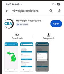 Click HERE for link to app on Michigan Weight Restrictions