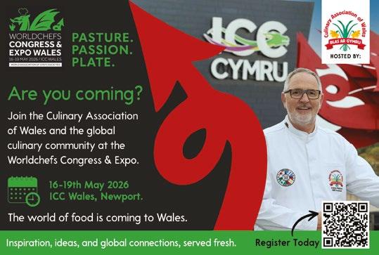 All this can leave us feeling a bit battered. So perhaps it’s worth stepping back and focusing on what we do know. Welsh food and drink is in remarkably good shape, as our feature ‘Wales steps up to the plate’ shows. More producers than ever are launching brilliant new products, and surveys on the Value of Welshness reveal growing appreciation - from consumers and trade alike, at home and across the world - for the quality of our produce and the skill of our chefs. e arrival of the Worldchefs Congress and Expo at ICC Wales this May is further proof. is is the chef world’s crème de la crème event, and in more than