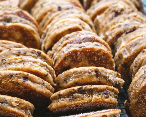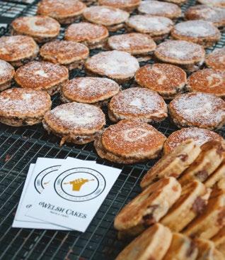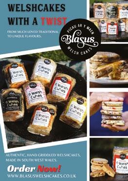 While Welsh cakes abound, it is not easy to find one ‘off the shelf’ that tastes as good as one fresh ‘off the planc’. Step up Blasus, a family run Carmarthenshire business. Blasus founder, Sarah, who has been using quality ingredients to bake small batches of awardwinning Welsh cakes for a decade, has turned it into an art form. Blasus Welsh cakes, really are thick circles of joy. Arriving packaged in their distinctive Welsh blanket livery, golden and with a gentle dusting of sugar, they are delicious cold but are glorious if popped onto a pan and eaten warm. They may be thick but they’re perfectly cooked and delightfully light and fluffy. We were lucky enough to taste three varieties. Blasus’ ‘traditional’ Welsh cakes are buttery-perfection, with a gorgeously sumptuous texture, plump, sweet sultanas and gentle hints of cinnamon. The Pecan & Maple Syrup are a delightful Welsh-Canadian fusion. Again, beautifully dense, but this time with gently sweet maple-syrup notes and softly nutty pecan pieces enhancing both taste and texture. And finally, we tried the Penderyn. What a triumph! With hints of honey and ginger and those warm smoky almost sherry-like whisky notes characteristic of this fine single-malt, the Penderyn Welsh cakes are unrivalled in richness. Blasus!